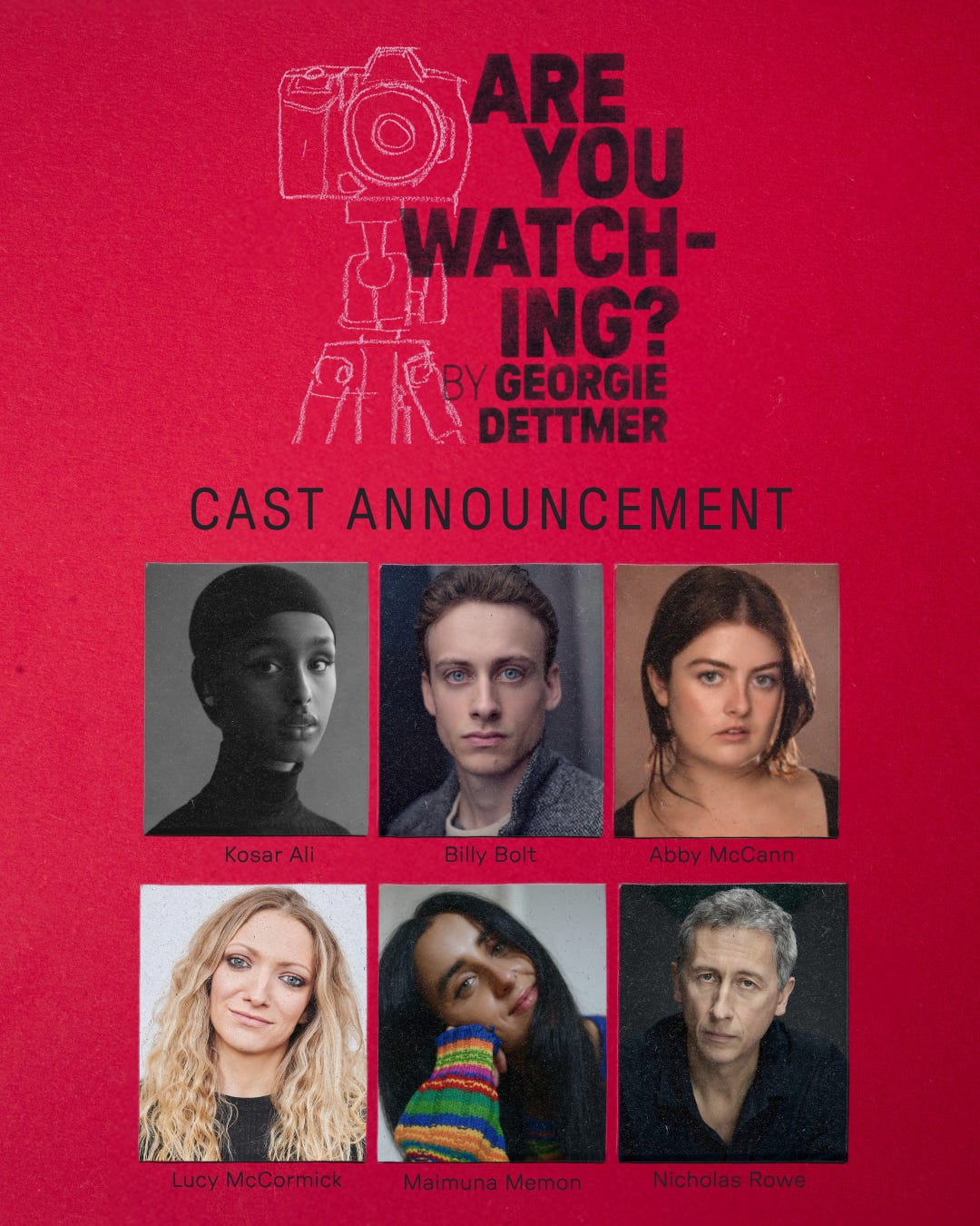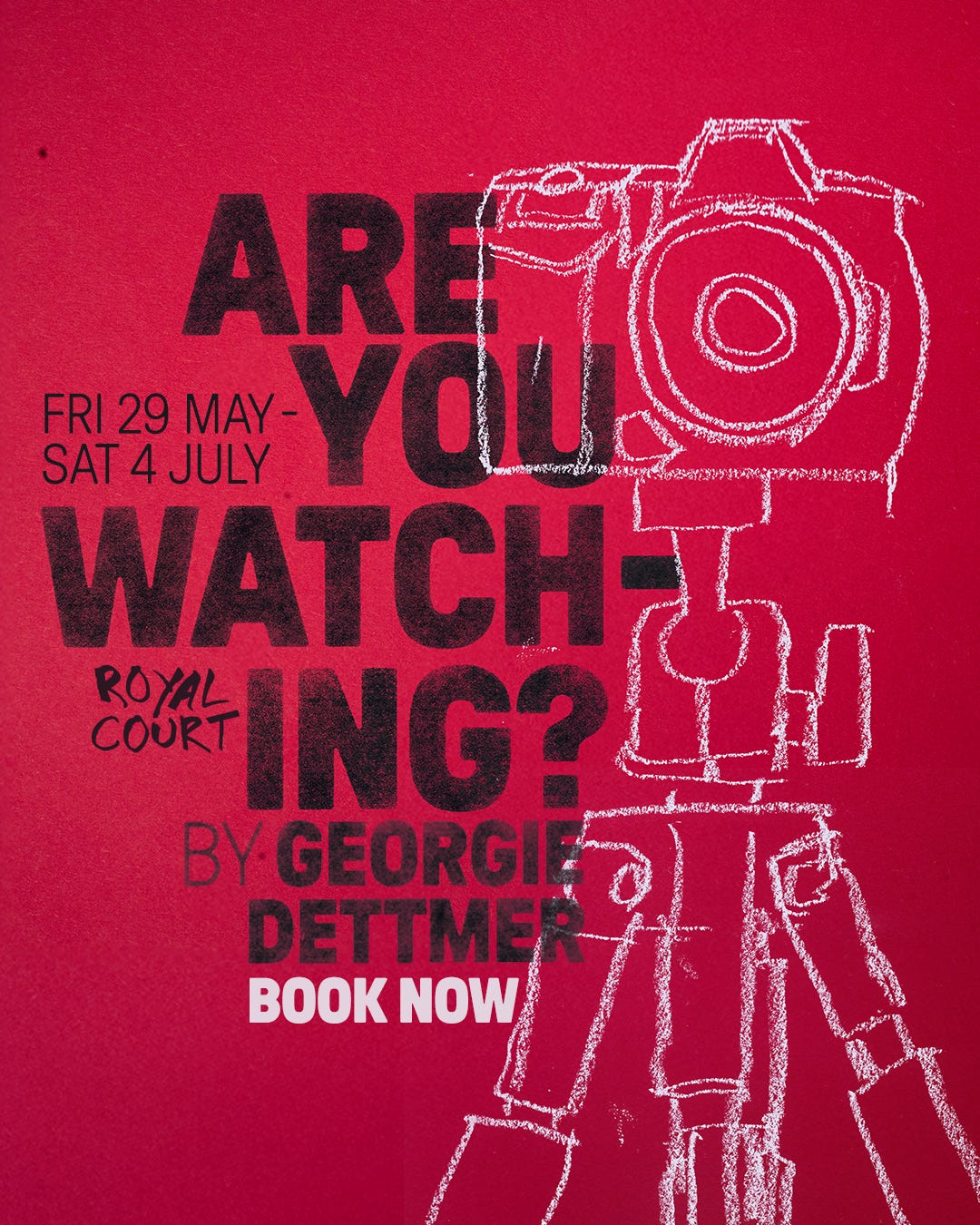 I’m so delighted to finally be able to share with you my next show. I’m directing Are You Watching? at the Royal Court Theatre, opening in May this year. The play is by the brilliant Georgie Dettmer, and I couldn’t be more excited to be working on it.
